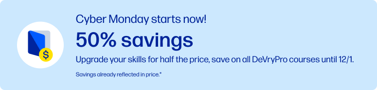 * This savings is exclusively for a one-time purchase of available DeVryPro courses. Expires December 1, 2025. Not combinable with other offers. No cash value. Terms subject to change.