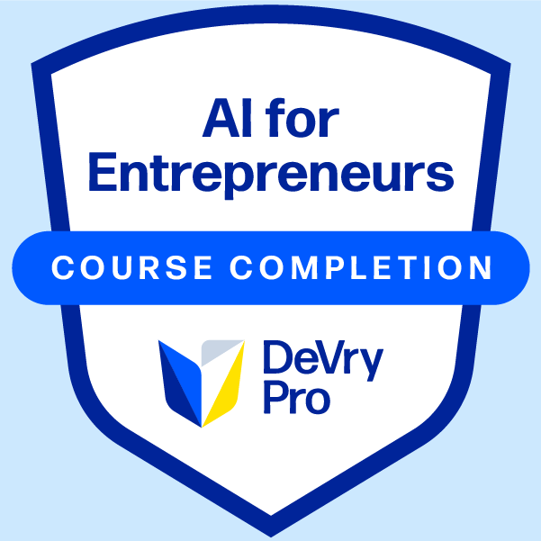 *AI for Entrepreneurs course is offered at no cost. DeVry University reserve the right to modify or discontinue the course at their discretion. Students looking to receive a completion certificate will be assessed a fee.